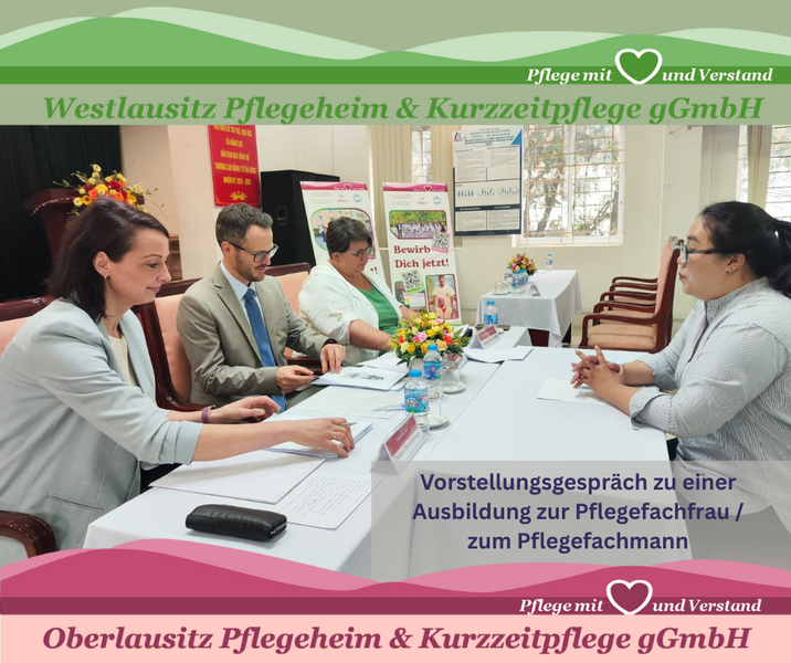 Rekrutierungsreise nach Vietnam. Gemeinsam für die Pflege von morgen! Vom 18.1. – 24.1.2026 war eine Delegation der Oberlausitz Pflegeheim & Kurzzeitpflege gGmbH und Westlausitz Pflegeheim & Kurzzeitpflege gGmbH gemeinsam mit dem Kooperationspartner Bildungswerk der Sächsischen Wirtschaft GmbH auf Rekrutierungsreise in Vietnam unterwegs. In Ho-Chi-Minh-Stadt und Hanoi wurden Pflege- und Sprachschulen sowie Seniorenpflegeeinrichtungen besucht, um den persönlichen Austausch zu suchen und Perspektiven für die Pflegeausbildung zu schaffen. In zahlreichen Bewerbungsgesprächen für eine Ausbildung zur Pflegefachfrau /-mann konnten wir engagierte und motivierte junge Menschen kennenlernen, ihre Fragen zur Ausbildung beantworten, unsere Seniorenwohnhäuser und -zentren sowie den Ausbildungsweg vorstellen. Infolge des direkten Austauschs und der persönlichen Begegnungen konnten für die OLPK/WLPK 12 Auszubildende für eine erfolgreiche Fortsetzung der Nachwuchsgewinnung im Jahr 2026 gewonnen werden. Bereits im vergangenen Jahr 2025 konnten für die OLPK/WLPK 16 Auszubildende aus Vietnam für die Pflegeausbildung gewonnen werden. Wir freuen uns über die vielen positiven Eindrücke und vielversprechenden Kontakte und blicken gespannt auf die nächsten Schritte. Ein herzliches Dankeschön geht an alle Schulen, Einrichtungen und Gesprächspartnerinnen und -partner für den offenen Austausch und die Gastfreundschaft, sowie an das bsw - Bildungswerk der Sächsischen Wirtschaft für die Koordination der Rekrutierungsreise.