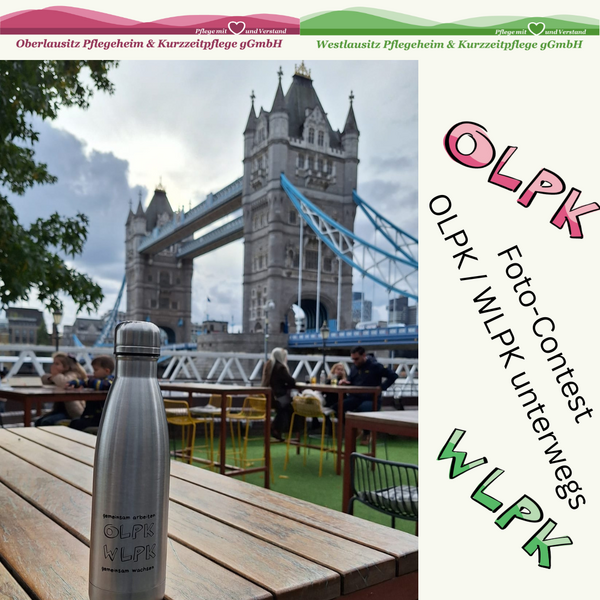 "Unsere Trinkflasche geht auf Reise"... In Zusammenarbeit mit der Geschäftsleitung hat die AG Gesundheit zu einem Mitarbeiterfotowettbewerb aufgerufen. Das Weihnachtsgeschenk, die Trinkflasche der OLPK und WLPK, soll in Szene gesetzt werden, ganz gleich ob im Urlaub, auf Konzerten oder Wanderungen, Hauptsache sie ist mit unterwegs. Wir freuen uns auf ein spannendes Jahr mit zahlreichen Fotos.