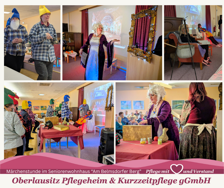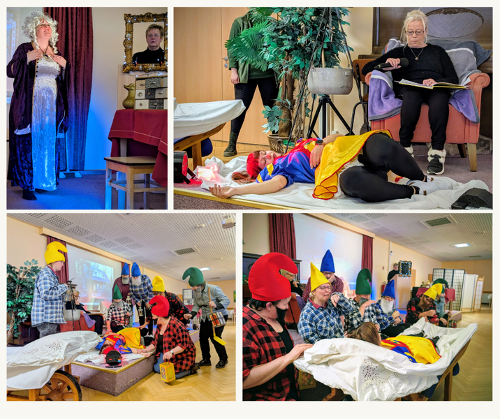 An gleich zwei Tagen haben unsere Alltagsgestalter*innen gemeinsam mit unseren Kulturleiter den Märchenklassiker „Schneewittchen“ auf die Bühne unseres Speisesaals des Seniorenwohnhauses „Am Belmsdorfer Berg“ gebracht. Mit ganz viel Charme und Humor wurde gelacht, gestaunt und mitgefiebert. Unsere Bewohner*innen hatten viel Freude an der Aufführung. Da haben sich die Proben gelohnt, für ein bisschen Märchenzauber im Alltag. Danke an alle Mitwirkenden.