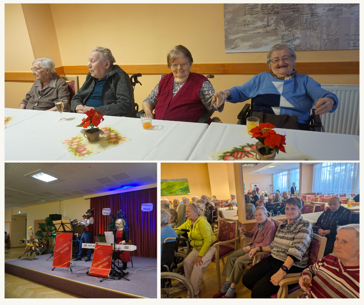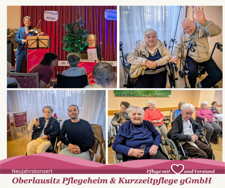 Das traditionelle Neujahrskonzert im Seniorenwohnhaus „Am Belmsdorfer Berg“ wurde am 7. Januar 2026 mit einem Grußwort der Hausleitung und einem Gläschen Sekt/Saft eröffnet. Im Anschluss führte uns das „Duo Mercurius“ aus Dresden mit Violine, Klavier und Gesang durch verschiedene Epochen der Musikgeschichte. Es erklangen Walzer und andere Stücke aus Operette, Musical und Filmmusiken, die bei unseren Bewohnern/-innen großen Anklang fanden. Wir sagen „Dankeschön“ und wünschen Allen ein gesundes, aktives und erfolgreiches 2026.