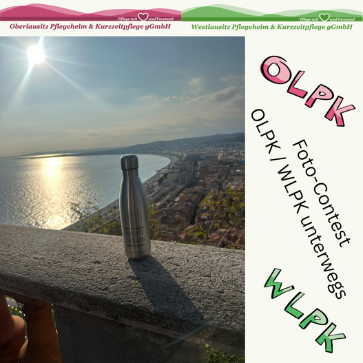 "Unsere Trinkflasche geht auf Reise"... In Zusammenarbeit mit der Geschäftsleitung hat die AG Gesundheit zu einem Mitarbeiterfotowettbewerb aufgerufen. Das Weihnachtsgeschenk, die Trinkflasche der OLPK und WLPK, soll in Szene gesetzt werden, ganz gleich ob im Urlaub, auf Konzerten oder Wanderungen, Hauptsache sie ist mit unterwegs. Wir freuen uns auf ein spannendes Jahr mit zahlreichen Fotos.